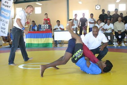 * Warren Carcasse (63,5kg, ju-jitsu) bat Altaf Nowbuth (62kg, lutte) en 2’58’’ alors qu’il menait 4 à 0.