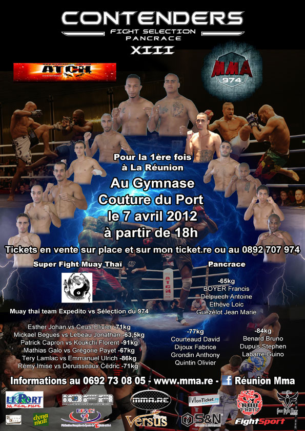 Le Contenders XIII aura lieu au Port le samedi 7 Avril 2012 au Port au gymnase Couture. Les places sont à 15€ seulement et les portes seront ouvertes à 18h.
